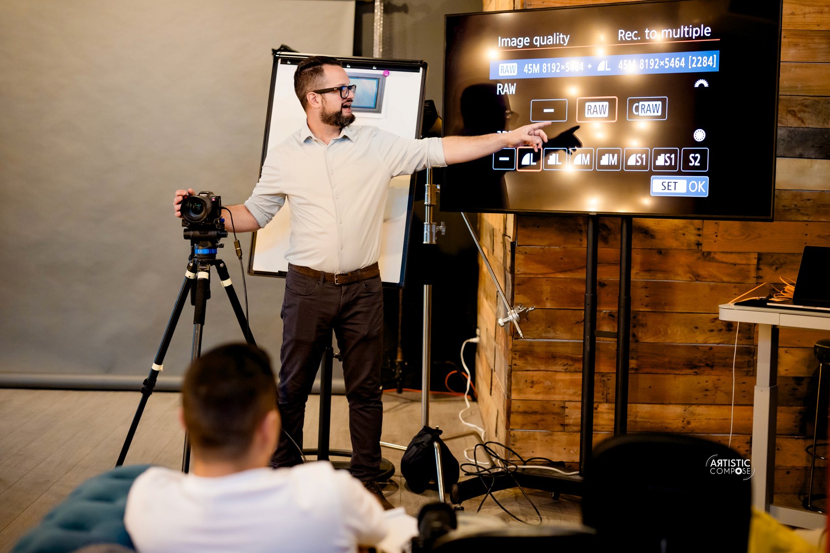 ¡Ambos! Por la mañana entramos en lo teórico, luego en la tarde damos espacio para que practiquen con sus cámara junto a una modelo en vivo en nuestro estudio Artistic Compose.